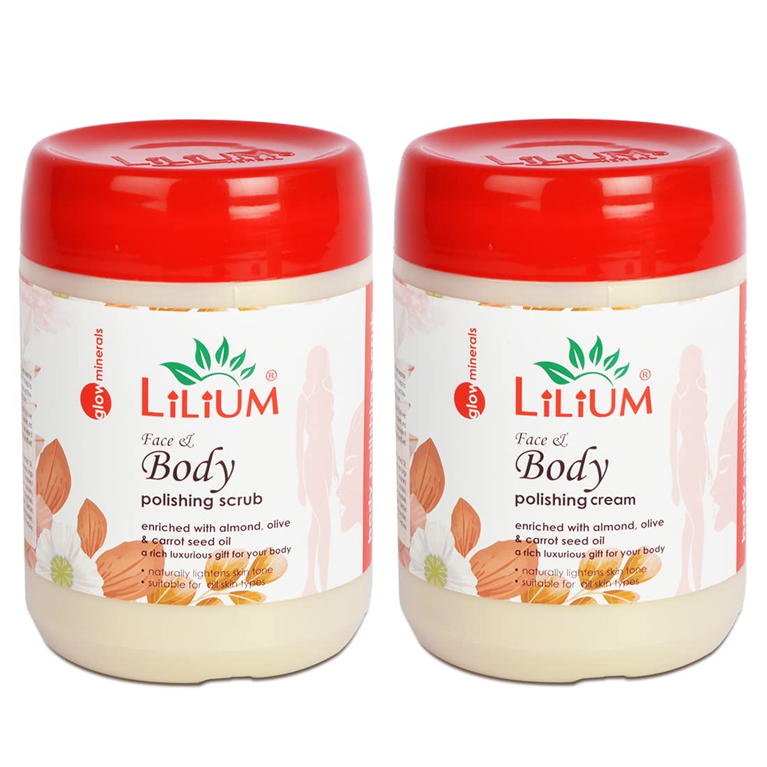 Lilium Body Polishing Scrub and Cream (900g Each) For Dull & Uneven Skin Tone | Remove Dirt & Dead Skin |Improve Skin Texture | Soft & Smooth Skin| For Men & Women | All Skin TypesPack of 2