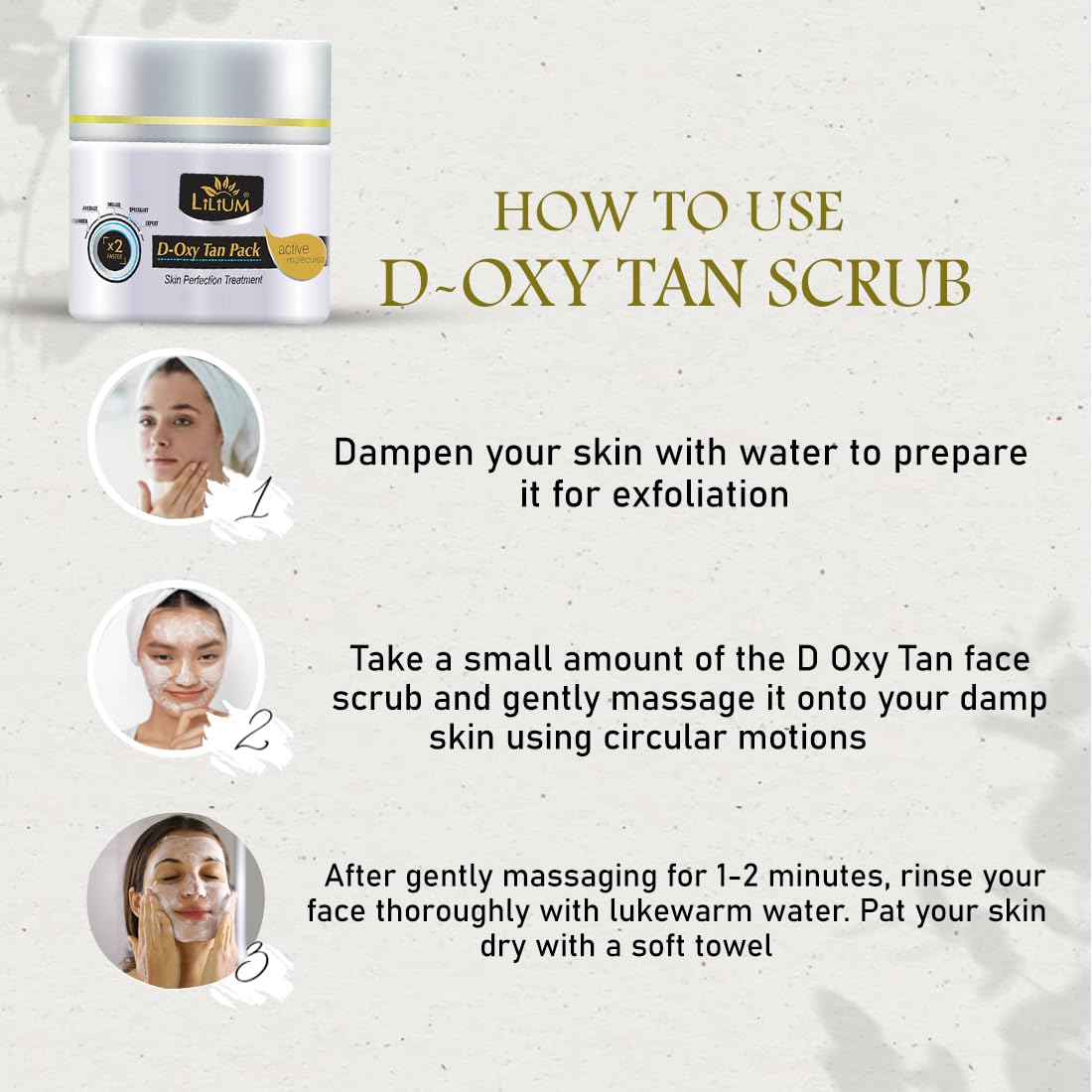 Lilium D Oxy Tan Scrub 40g | De Tans Removal Exfoliating & Lighten Acne Marks | Decrease UV Damage With Kojic & Milk | Paraben Peroxide & Sulfate Free | 100% Vegan Dermatologically Tested | Men & Women