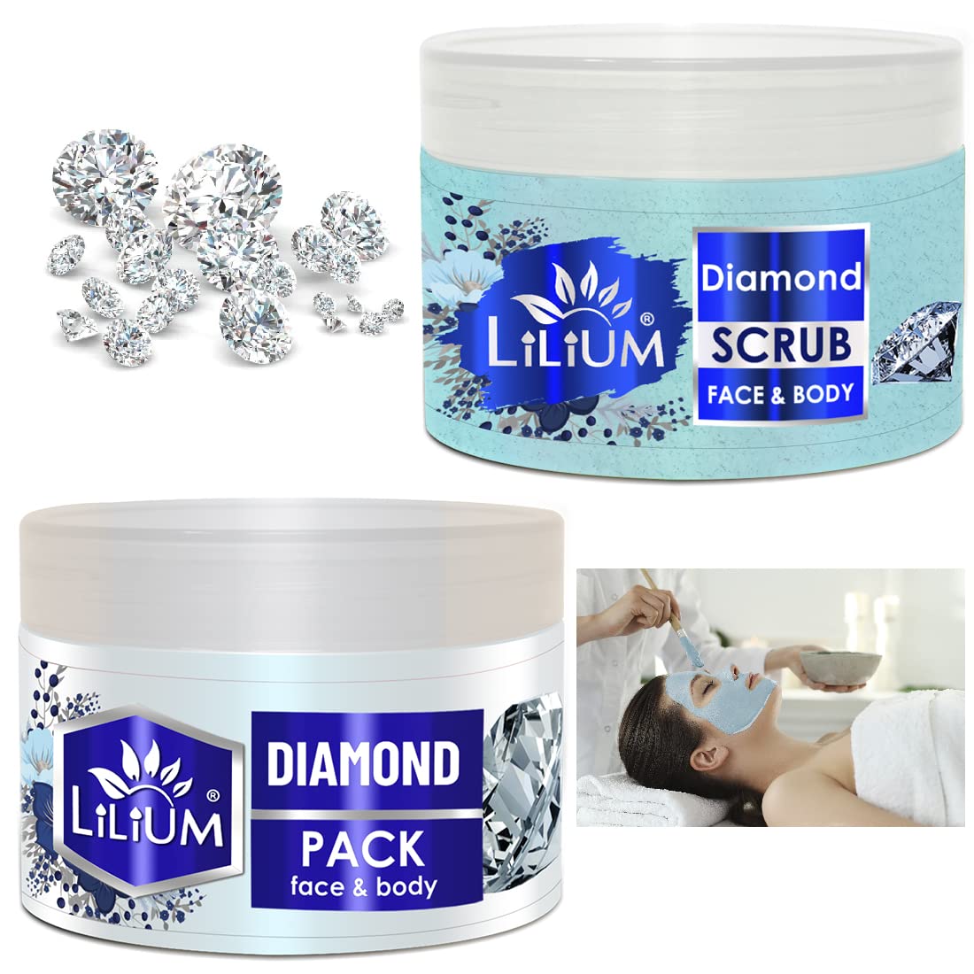 Lilium Diamond Scrub & Pack 250g Each | Enriched With Jojoba Oil & Active vitamins B3 C E | Remove Blackheads & Give Instant Radiance Cruelty Free Pack Of 2