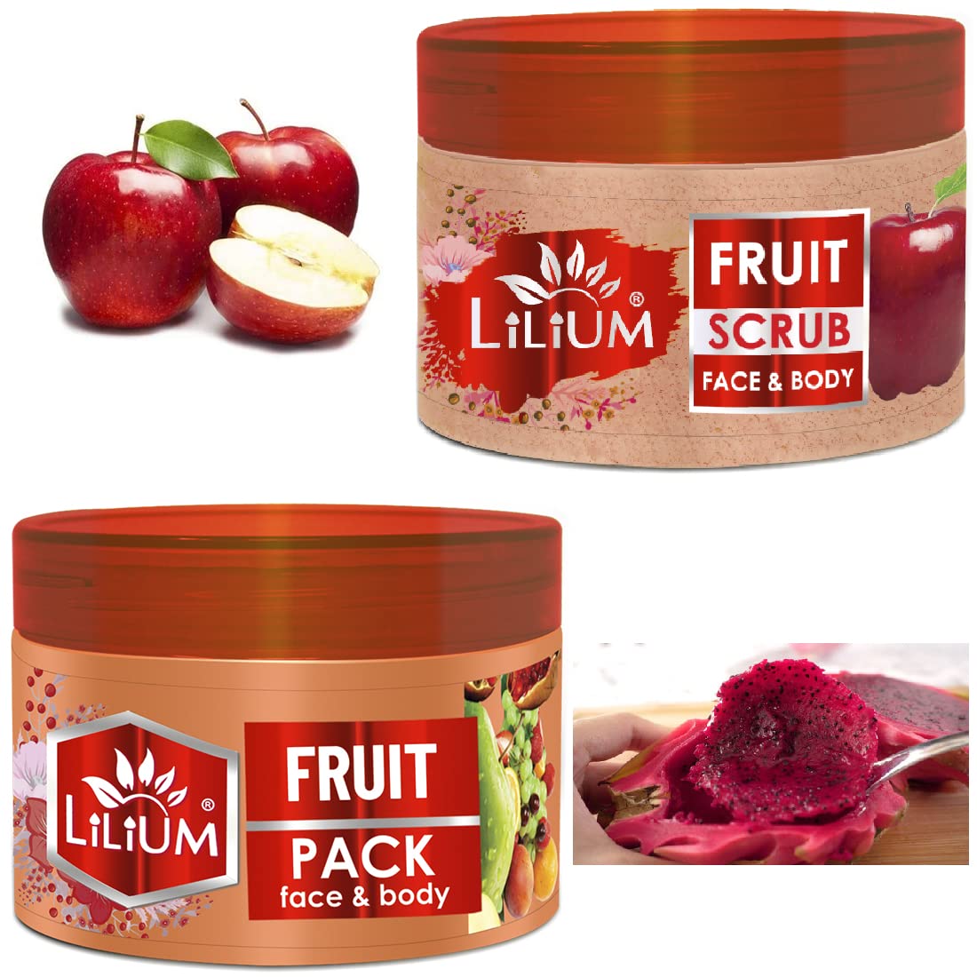 Lilium Fruit Scrub & Pack 250g Each | Enriched With Fruit Extract & Active vitamins B3 C E | Remove Oil Dirt Blackheads And Give Instant Radiance Cruelty Free Pack Of 2