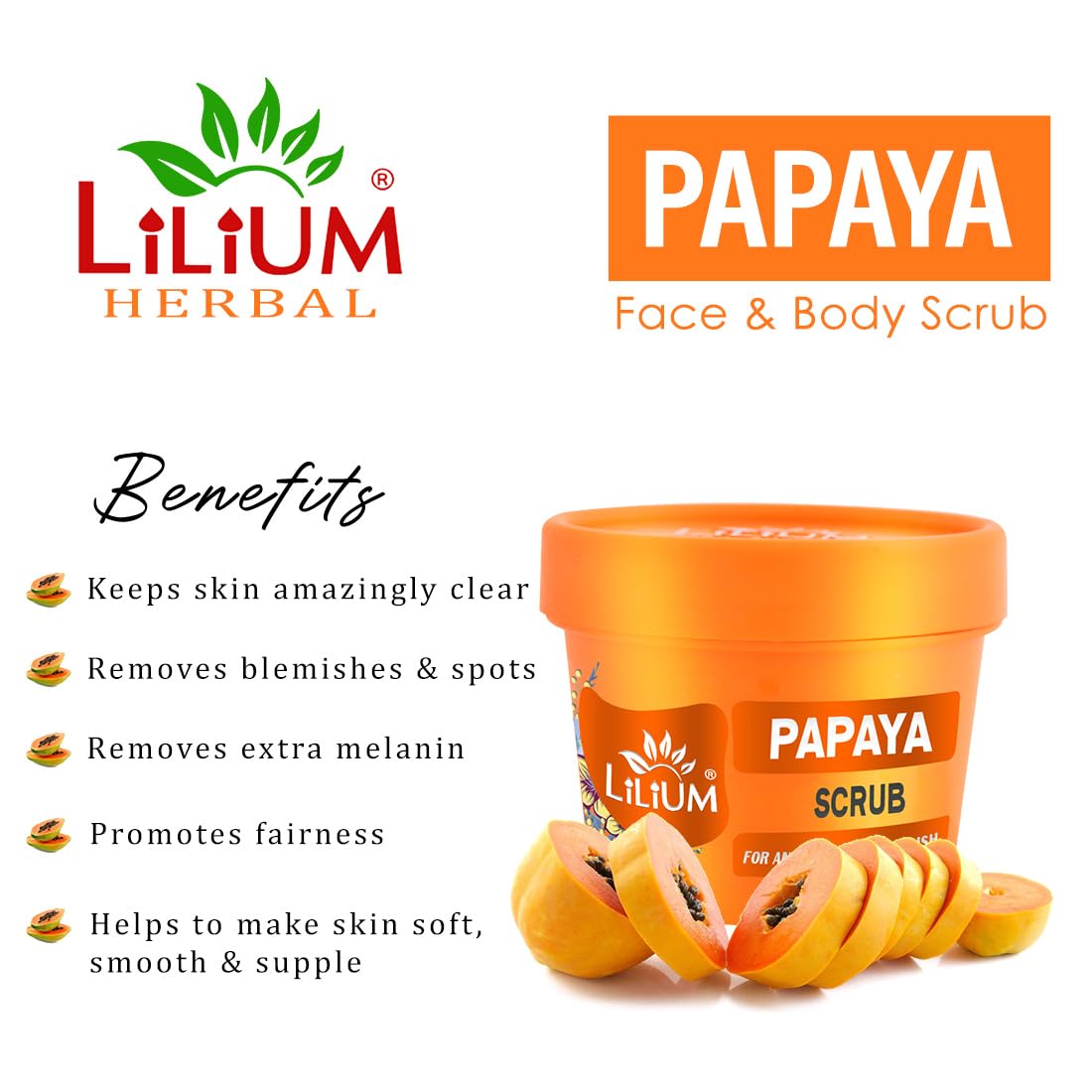Our Herbal Papaya Scrub is a delightful fusion of natural ingredients that have been carefully crafted to revitalize your skin. At the heart of this scrub is the powerful papaya fruit known for its exfoliating and skin-renewing properties. This scrub is designed to rejuvenate the skin leaving it feeling soft smooth and refreshed. Experience the goodness of papaya and other natural ingredients with our Herbal Papaya Scrub and achieve a healthier more radiant complexion
