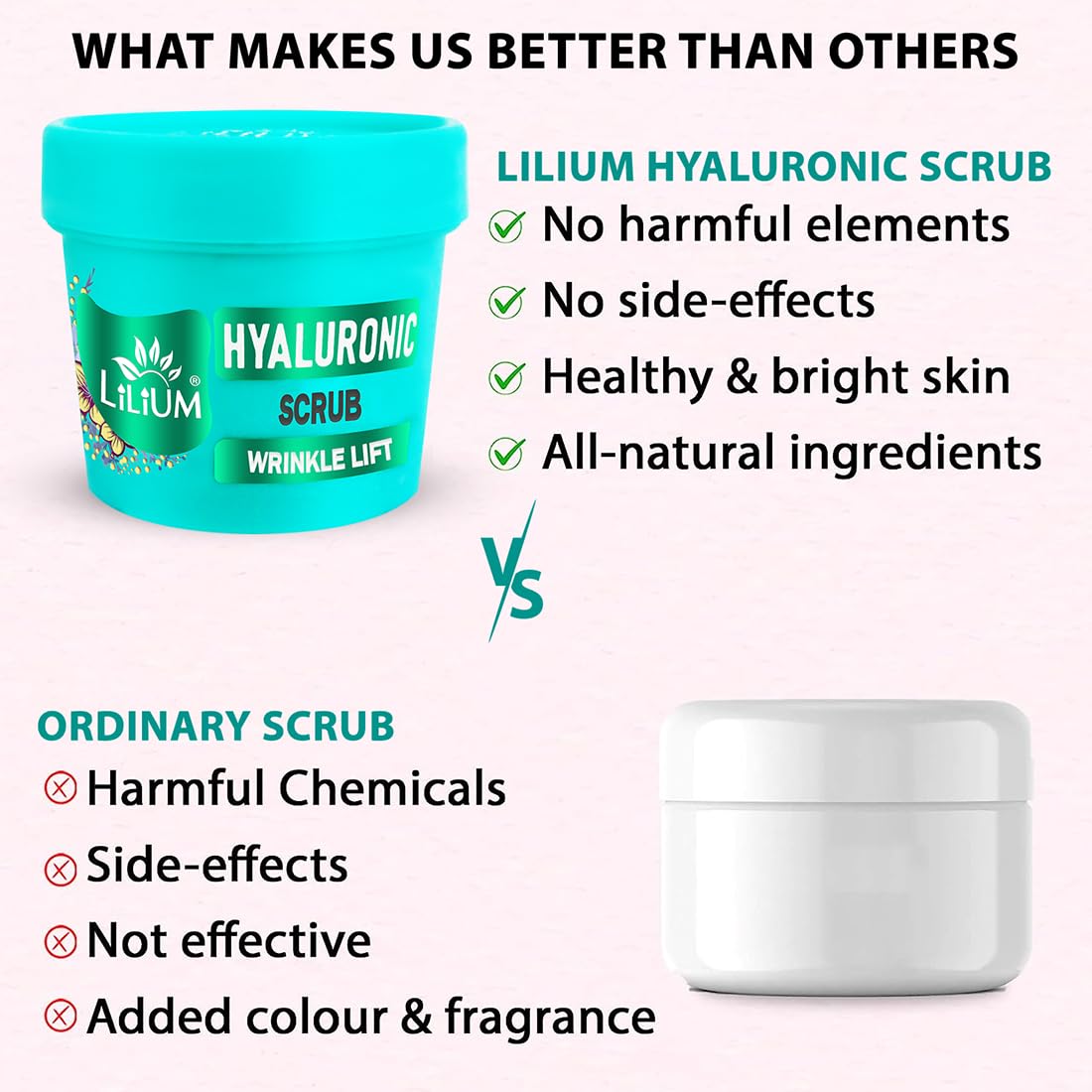Lilium Hyaluronic Scrub 100g For Wrinkle Lift New Formulation Ultra Glow Feel Fresh & Smoothness No Harmful Chemical & Paraben Free