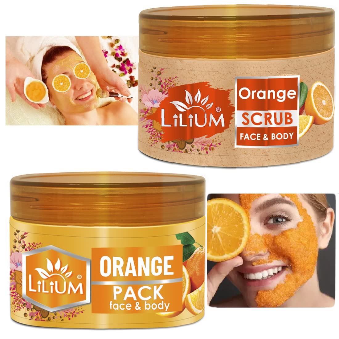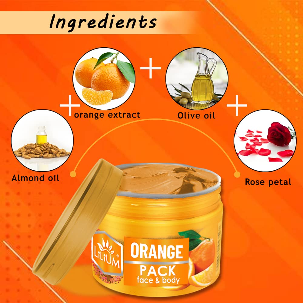 Lilium Orange Scrub & Pack 250g Each | Enriched With Orange Extract & Active vitamins B3 C E | Remove Oil Dirt Blackheads And Give Instant Radiance Cruelty Free Pack Of 2