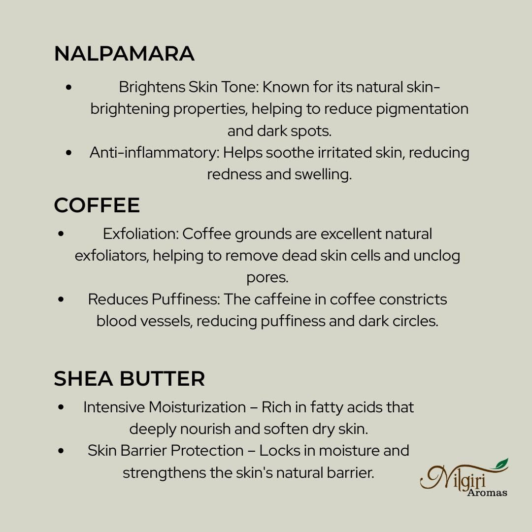 100% Natural Arabica Coffee Scrub 200 gm with Organic Coffee and Nalpamara extracts: Purchase with complete peace of mind.