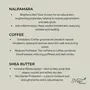 SHEA BUTTER COFFEE NALPAMARA BARK FACIAL SCRUB FORMULA: This caffeine formula specializes in targeting stretch marks & Spider veins while boosting your skins anti-oxidants.This scrub also helps to lighten the scars and tighten the skin.