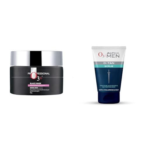 O3+ Black Mask Brightening & Whitening For Clear & Glowing skin (50 g) & O3+ ALPHA MEN Acno D-TAN Scrub With Hyaluronic & Mint 50g