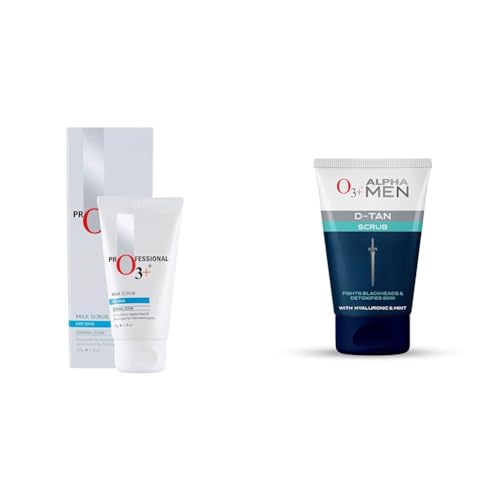 O3+ Milk Scrub Enriched with Macadamia Nuts Extracts for Clean & Bright Complexion & O3+ ALPHA MEN Acno D-TAN Scrub With Hyaluronic & Mint 50g
