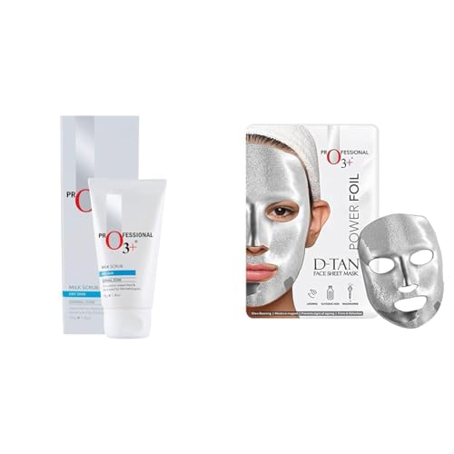 HomeHealth & PersonalSkin CareFace CareFace MasksO3+ Milk Scrub Enriched with Macadamia Nuts Extracts for Clean & Bright Complexion & O3+ Power Foil D-Tan Face sheet mask for Skin Brightening Face Mask For Glowing Skin Combo