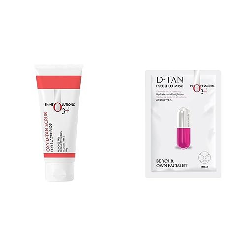O3+ Oxy D-Tan Scrub 60g for Blackheads & Glowing Skin & O3+ Facialist Dtan Face Sheet Mask (30g) Combo