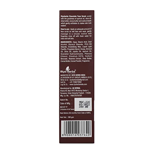 Riyo Herbs Chocolate Face Scrub Comes with the Goodness of Cocoa Butter, Diminishes Dark Spots & Blemishes, Reduces Puffiness, Inflammation, Unclog Pores & Removes Dead Skin Cells, 100gm