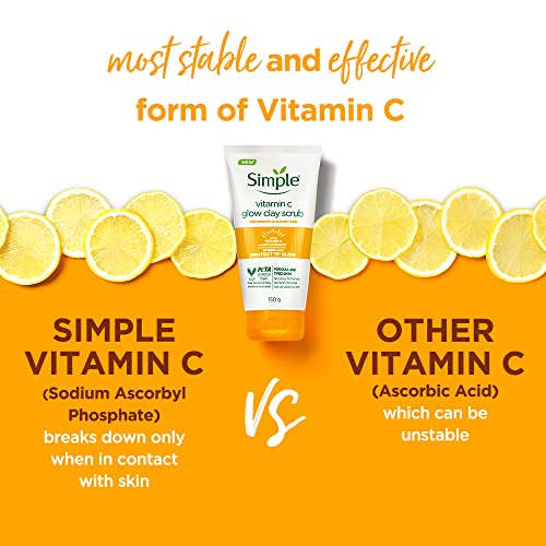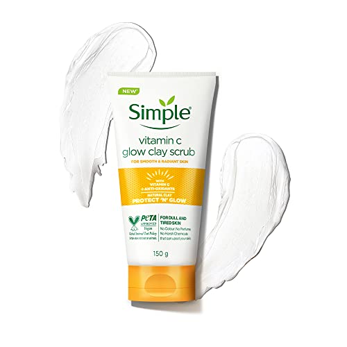 Simple Protect N Glow Vitamin C Glow Clay Scrub 150ml | Gently Exfoliates for Smooth & Radiant Skin | For Dull & Tired Skin