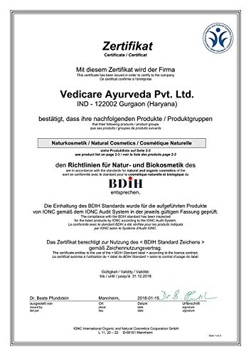 • 100% Natural Product. Certified by BDIH Germany. 100% Vegetarian & Not tested on Animals.