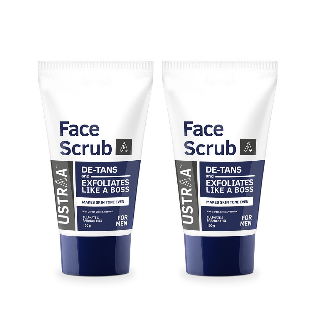 Ustraa Face Scrub -100g - Pack of 2 - De-Tan Scrub for Men | Exfoliation & Effective Tan Removal with Bigger Walnut Granules No Sulphate No Paraben | Made in India