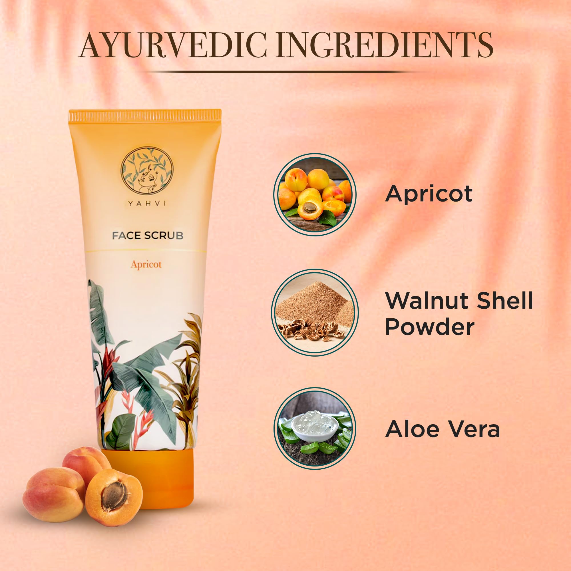 Yahvi Face Scrub Apricot | Face Scrub | Facial Exfoliation | For All Skin Types | Ayurvedic Formulated | Natural & Organic | Cruelty-free |100ml