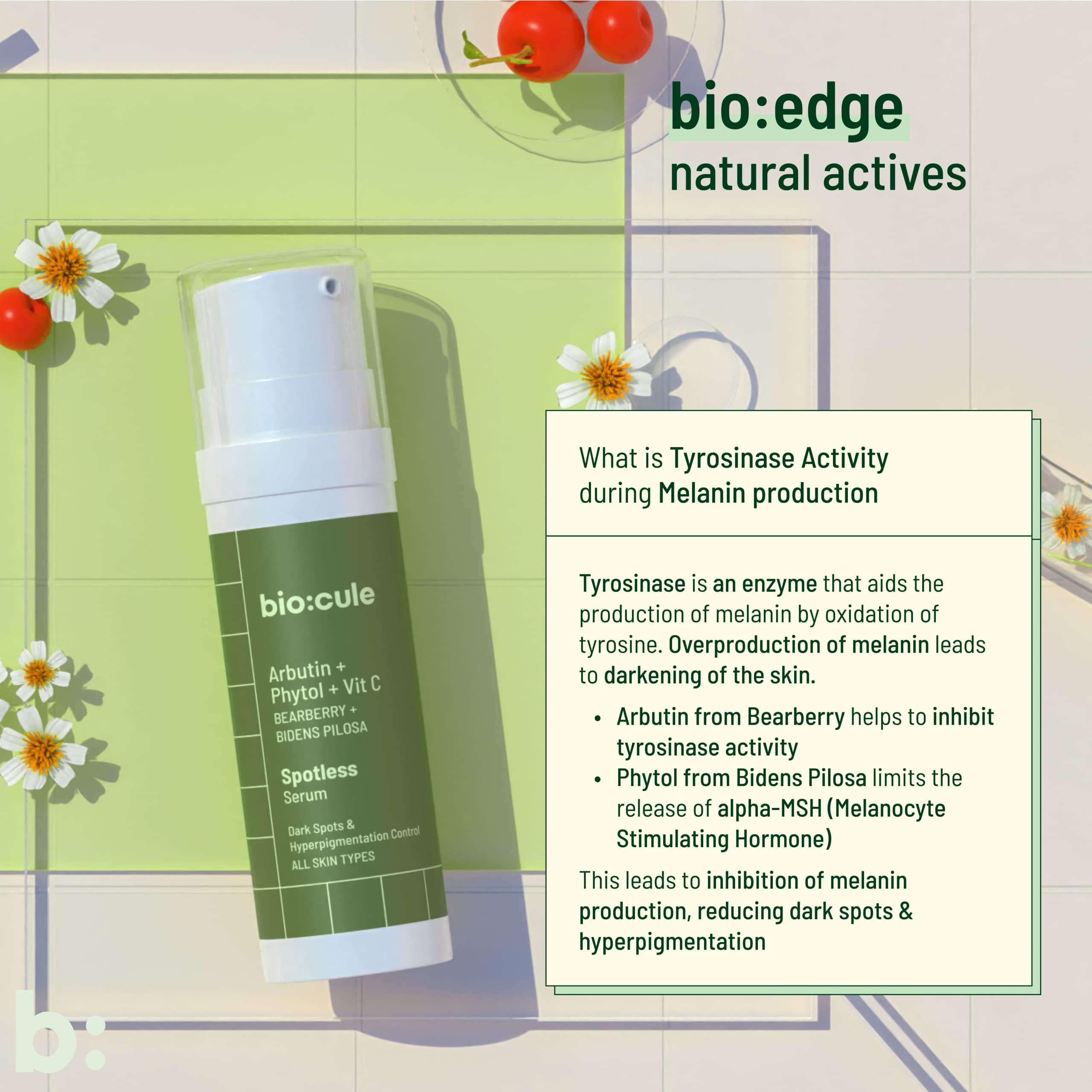 biocule Spotless Serum Arbutin Face Serum with Phytol & Vitamin C from Bearberry Bidens Pilosa & Kakadu Plum Face Serum for Pigmentation Dark Spots Freckles & Blemishes for All Skin Types 30ml