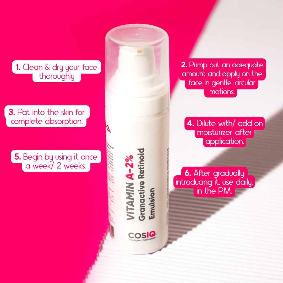 Cos-IQ 2% Vitamin A Granactive Retinoid Emulsion Face Serum | Vit-A Anti Ageing Night Cream Serum for Wrinkles Fine Lines & Acne | For Women & Men | 30ml