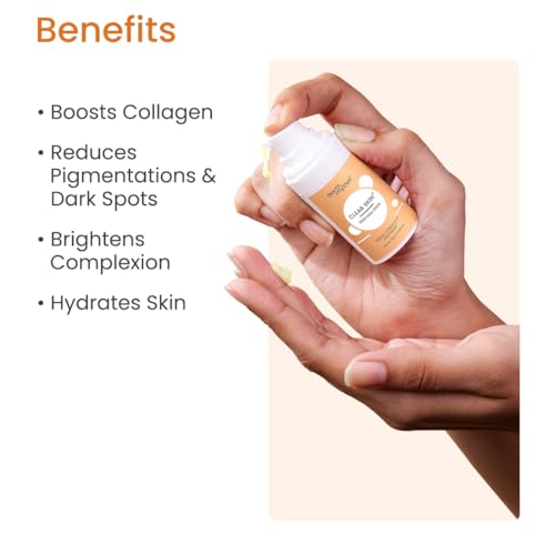 • Provides Healthy Glow: Vitamin C rich in antioxidant properties is a wonder ingredient that helps to collagen in the skin. o it helps your skin to regenerate naturally. Our Clear Skin Serum helps to revive your dull complexion and radiance. This glow trea