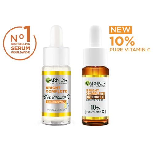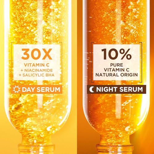 HomeHealth & PersonalSkin CareFace CareSerum & LotionGarnier 30X Vitamin C Day + 10% Vitamin C Night Serum Combo - Wake Up to 73% Brighter Skin, Reduces Dark Spots & Promotes Even Skin Tone, Suitable for all Skin Types, 15+15ml
