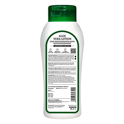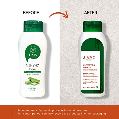 Jiva Aloe Vera Lotion hydrates and refreshes your skin without making it sticky.This fast-absorbing daily-use body lotion is enriched with Aloe Chandan (sandalwood) and extract of Anjeer (figs) and Sunflower which nourishes and gently moisturizes your skin.Regular application prevents dryness and keeps your skin youthful.