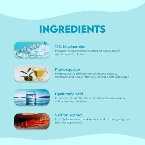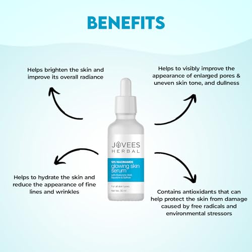 HomeHealth & PersonalSkin CareFace CareSerum & LotionJovees Herbal 12% Niacinamide Glowing Skin Serum With Hyaluronic Acid, Squalane & Saffron| Reduces Dullness, Hydrates & Repairs Skin| For Day and Night Use| For All Skin Type 30 ml