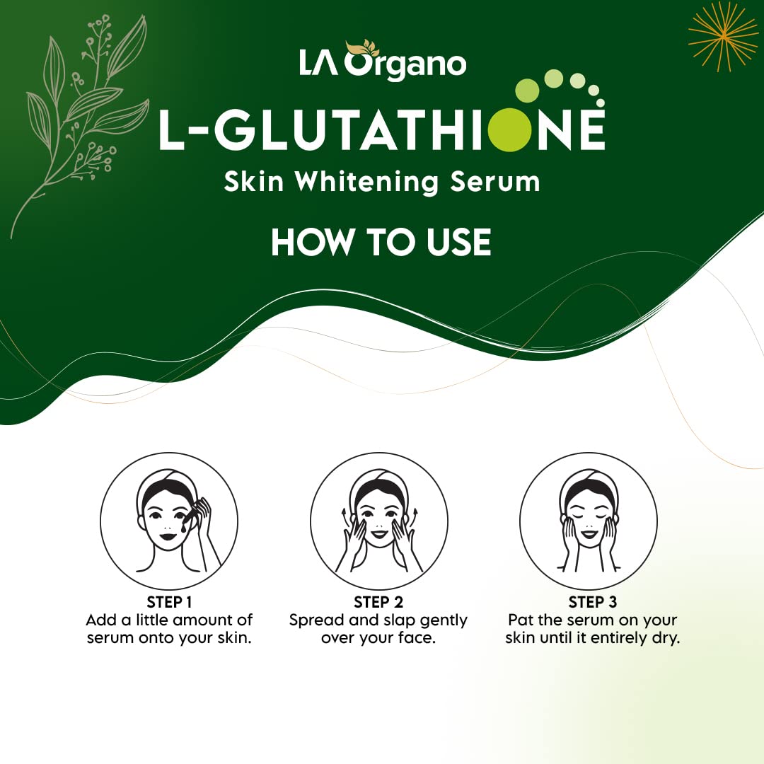 LA Organo L-Glutathione Serum for Skin Whitening & Damage Reduction - Face Brightening Serum with Vitamin C Licorice Extract 30ml