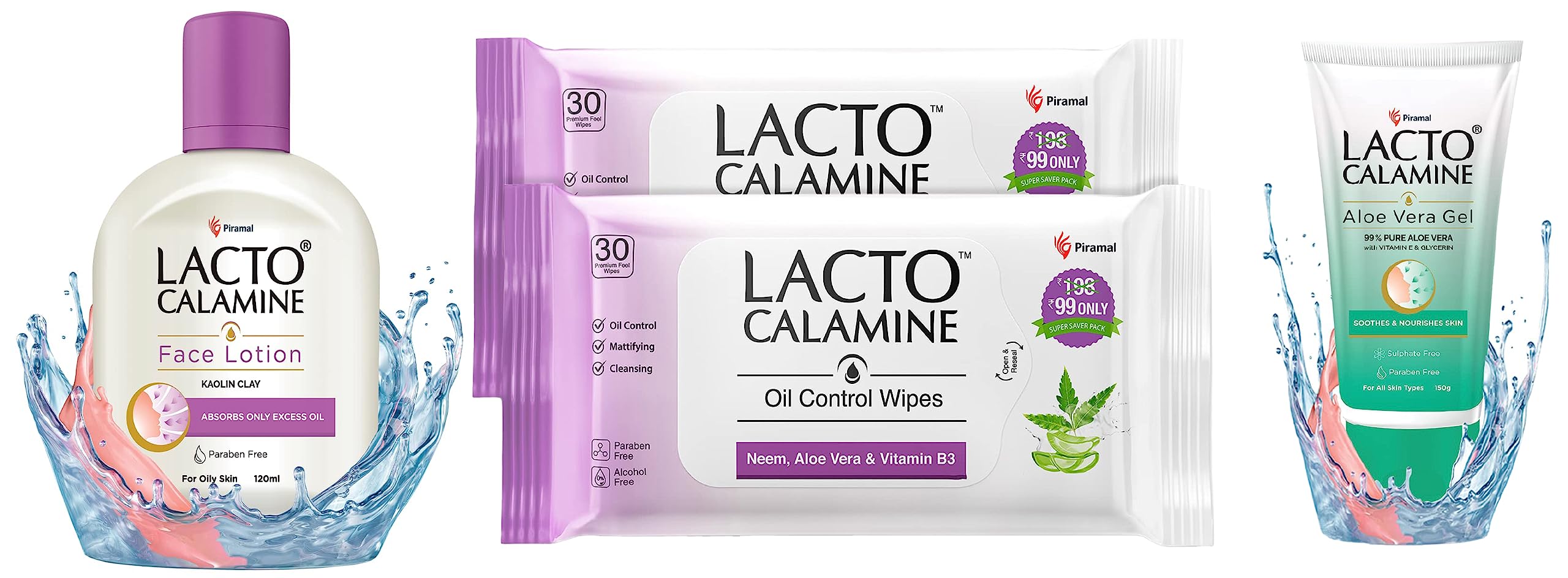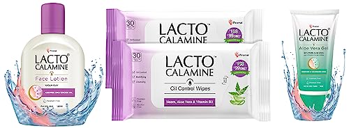 Lacto Calamine Face Lotion | 120ml | Daily Moisturizer For Face - Oily Skin | Kaolin Clay Glycerine & Zinc Oxide | Abosrbs Excess Oil | Fights Pimples Darkspots & Blackheads | Body LotionLacto Calamine Lotion-oil control - from oily to normal skin.Lacto Calamine Oil Control Face Wipes | 30 N each- Pack of 2 | Wet Wipes for Face With Neem Aloe Vera & Niacinamide | Makeup Remover Wipes | Hydrating Refreshing Soothing | Pararben & Alcohol FreeLacto Calamine Oil Control Face Wipes with Neem Vitamin B3 and Aloe Vera No Parabens Alcohol Free White 60 Count Pack of 2Lacto Calamine Aloe Vera Gel For Face | 150g | Moisturizer For Face With 99% Pure Natural AloeVera Vitamin E & Glycerin For Hydrating Skin Body & Hair | No Parabens No SulphatesLacto Calamine Aloe Vera Gel is a lightweight and non-sticky gel that hydrates and moisturizes your skin without leaving it oily. With 99% pure aloe vera it soothes and nourishes your skin cools and freshens it and leaves it soft and supple. The natural properties of aloe vera make the gel suitable for oily and acne prone skin.