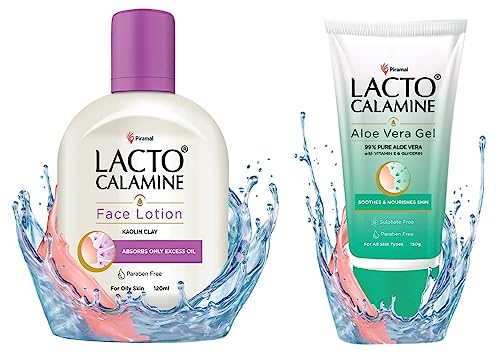 Lacto Calamine Face Lotion for Oil Balance - Oily Skin - 120 mlLacto Calamine Lotion-oil control - from oily to normal skin.Lacto Calamine Aloe Vera Gel with 99% Pure Natural Aloe Vera Vitamin E and Glycerin for non-sticky hydration and cooling effect. Lightweight. Soothes and Nourishes skin. No Parabens No Sulphates - 150 g - Pack of 1Lacto Calamine Aloe Vera Gel is a lightweight and non-sticky gel that hydrates and moisturizes your skin without leaving it oily. With 99% pure aloe vera it soothes and nourishes your skin cools and freshens it and leaves it soft and supple. The natural properties of aloe vera make the gel suitable for oily and acne prone skin.(NO ADDED COLOURS)