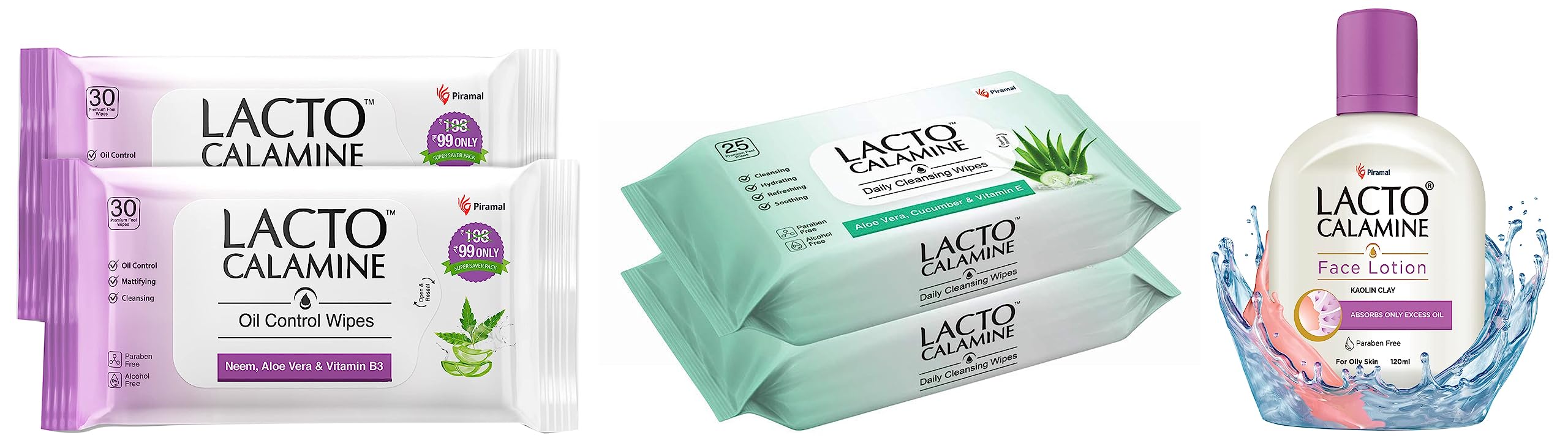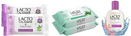 Lacto Calamine Face Lotion for Oil Balance - Oily Skin - 120 mlLacto Calamine Lotion-oil control - from oily to normal skin.Lacto Calamine Daily Cleansing Face Wipes with Aloe Vera Cucumber and Vitamin E White Pack of 2 50 CountLacto Calamine Daily Cleansing Wipes are face wipes that gently cleanse your skin from impurities dirt & pollution. Aloe Vera & Cucumber soothes and refreshes your skin while Vitamin E acts as an antioxidant protecting your skin.Lacto Calamine Oil Control Face Wipes with Neem Vitamin B3 and Aloe Vera No Parabens Alcohol Free White 60 Count Pack of 2LACTO CALAMINE OIL CONTROL WIPE 3in 1 formula with Neem Vitamin B3 and Aloe Vera. It keeps your skin feeling fresh and oil free. Paraben Free & Alcohol free.It gently cleanses your skin from impurities excess oil dirt & pollution giving you a clear matte look daily.