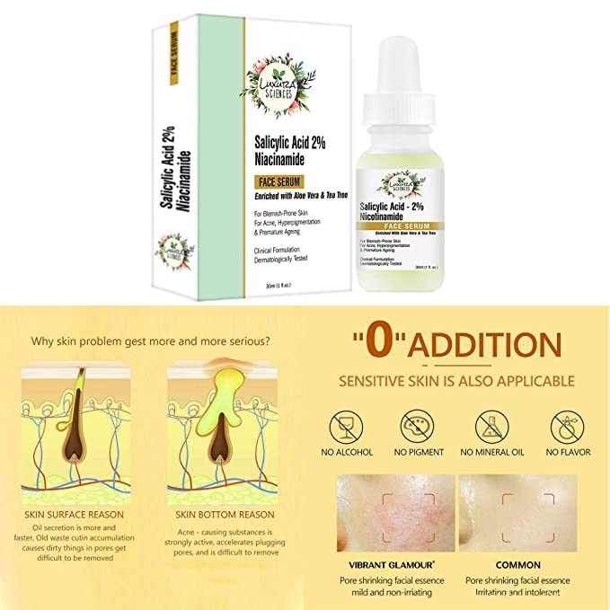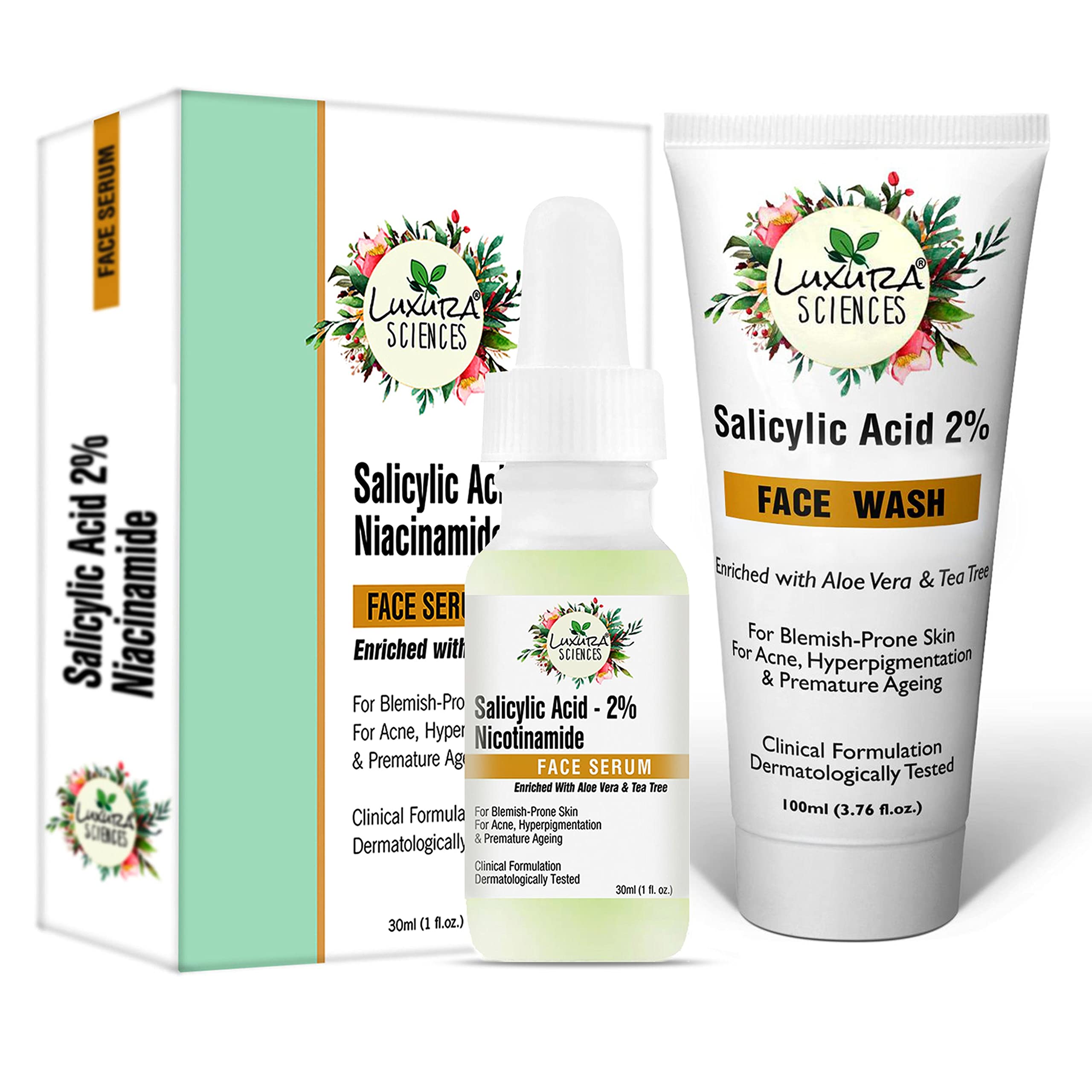 Luxura Sciences Salicylic Acid 2% Face serum 30 ml & Face wash 100 ml with Niacinamide Serum 30ml