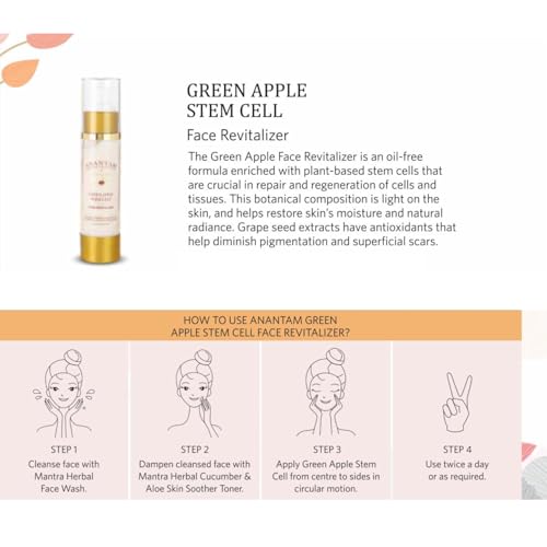 Mantra Herbal Anantam Green Apple Stem Cell Face Revitalizer Serum - 50 ml | Made with US Patented PhytoCellTech Technology | Anti-Ageing Properties & Suits for Mature Skin