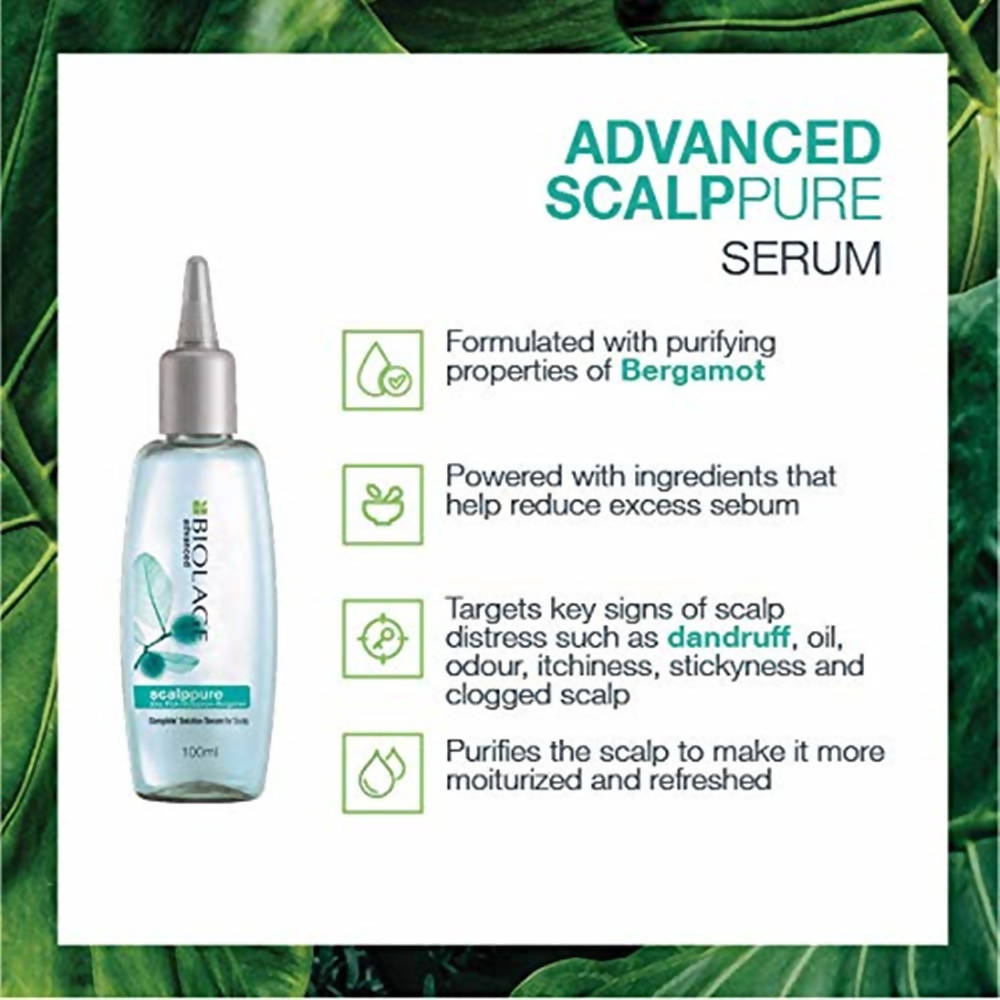 Matrix Biolage Scalppure Complete Solution Scalp SerumIs your hair looking frizzy, dull and dry? Revive your hair with the Matrix Biolage Scalppure Complete Solution Scalp Serum and make your hair soft and manageable. This formula is a one-of-a-kind serum that helps you with dandruff control. It also helps you control your flyaways and makes your hair manageable and smooth.Directions For Use:Cleanse and condition your hair with the Biolage Scalppure Shampoo and ConditionerTake a few drops of the serum into your palms and rub your palms together gently to warm up the product and spread it evenlyApply the serum from the mid-lengths to the tips of your hairStyle your hair as desiredLegal Disclaimer: Product images are for illustrative purposes only. Images/packaging/ labels may vary from time to time due to changes made b