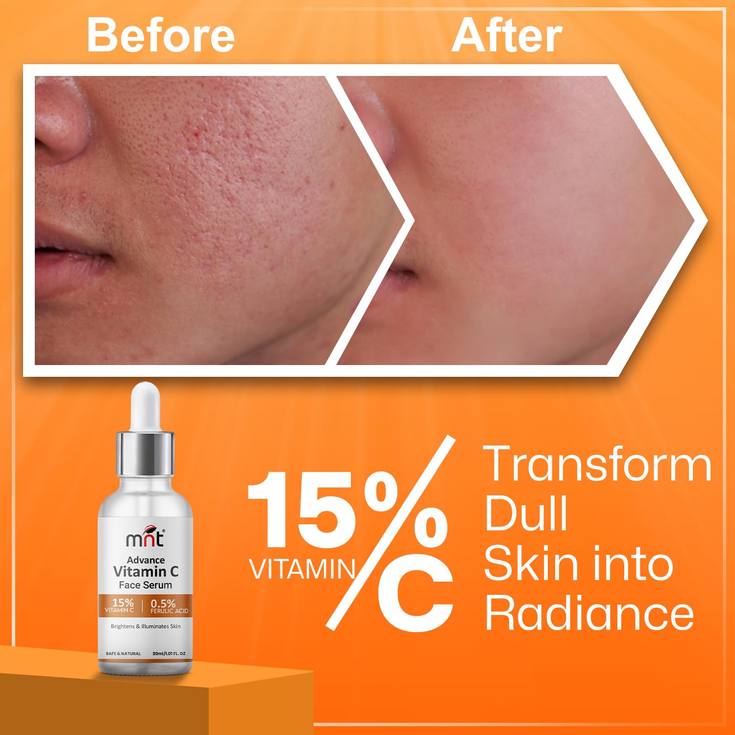 MNT 15% Vitamin C Face Serum with 0.5% Ferulic Acid for Glowing Skin I Brightens & Illuminates Skin I For Men & Women I 30 ml