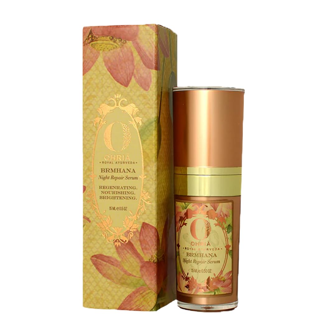 Ohria Ayurveda Brmhana Night Repair Serum| Deep Nourishment & Skin Brightening | Enriched with Goat Milk, Amla, Carrot Oil, Saffron & Cow's Ghee | For Men & Women| All Skin Types- 15ml