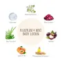 Hydrating Aloe Vera gel based body lotion absorbs quickly improves skin tone with calendula Almond and Jojoba oils. Wheat germ extracts nourishes with Vitamin E and raatrani extract and kokum butter softens & soothes.