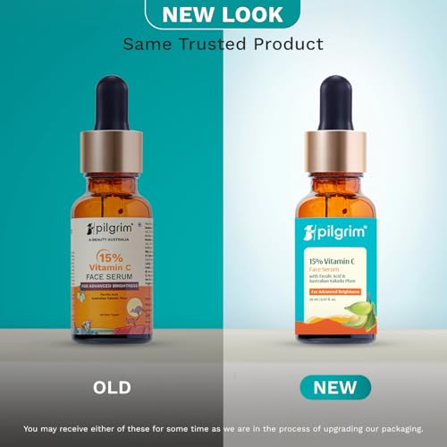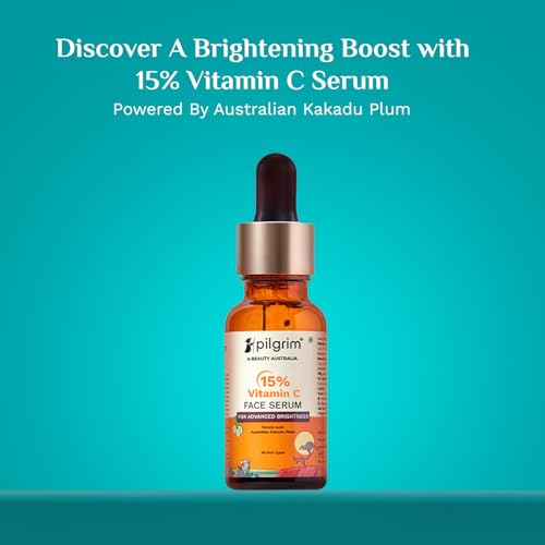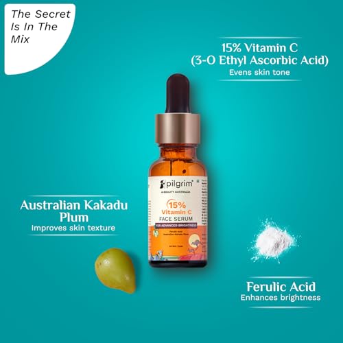 Pilgrim 15% Vitamin C Serum 20ml For Glowing Skin | Advanced Formulation With Ferulic Acid & Vitamin E |Reduces Dark Spots, Pigmentation |For All, Oily, Combination, Normal Skin |Men, Women