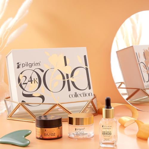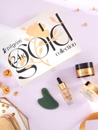 Pilgrim 24K Gold Collection Kit with FREE Gua Sha | Kit includes Gold Face Serum (20ml), Gold Face Mask (20gm) & Gold Moisturizer (50gm) | All skin types| Luxury Collection for restoring skin radiance