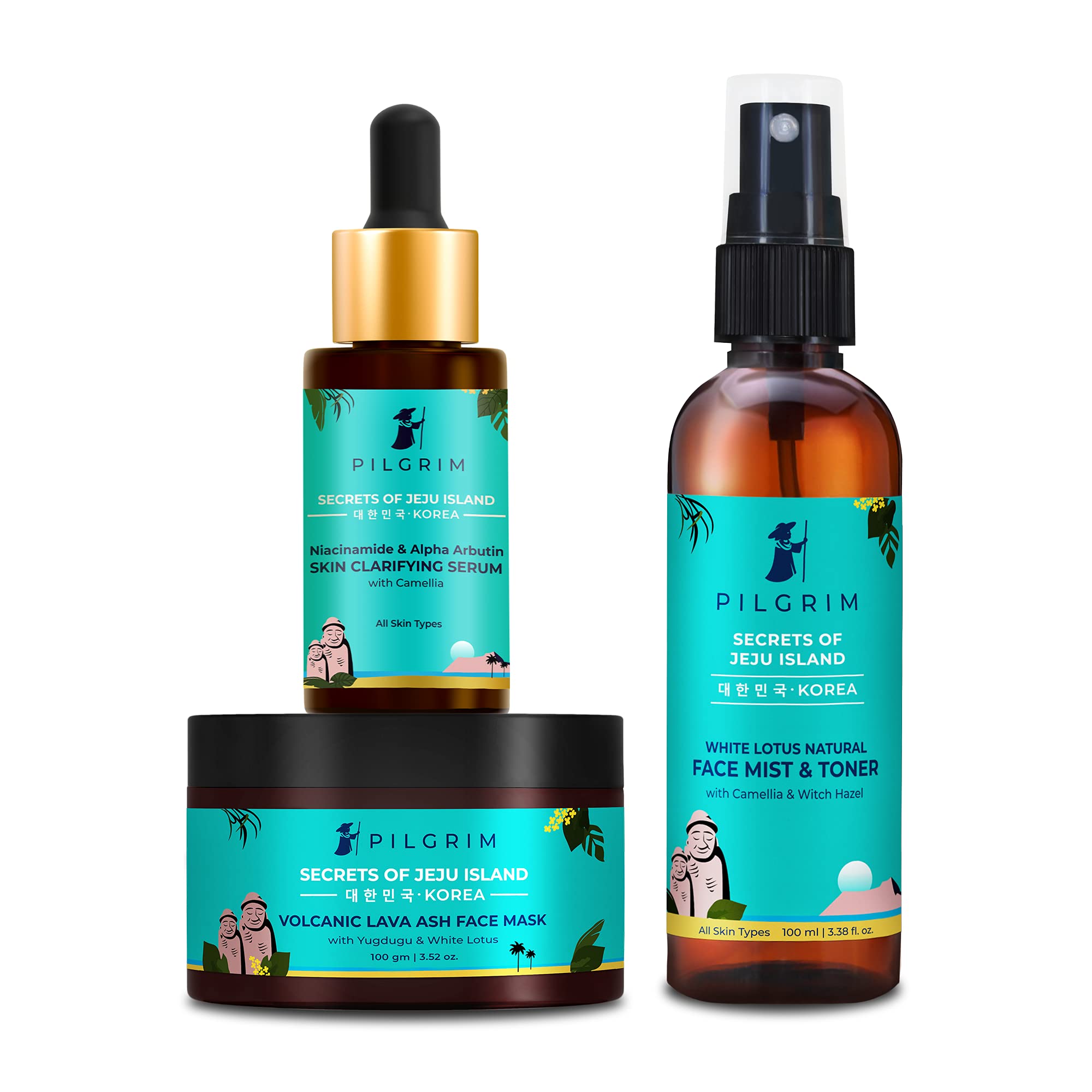 Pilgrim Advanced Skin Perfecting Serum has been crafted to reduce the appearance of Acne Scars Pits and Dark spots. This cutting edge formulation brings together Niacinamide Alpha Arbutin Camellia and Tripeptide to heal the skin from the inside out. It is lightweight and absorbs into the skin without any greasy residue. Niacinamide fades away acne marks for an even-toned and blemish-free skin. Alpha Arbutin promotes the production of collagen which helps repair scars and pits. Camellia & Tripeptide regulate sebum production prevent future breakouts and improve the look of enlarged pores.Crafted with Volcanic lava ash Yugdugu and White lotus the non foaming cleanser doesn't strip off the skin of its protective moisture barrier or disturb the natural pH thus maintaining its integrity and youth. Rediscover your baby-soft bouncy and clear skin once again. Transform dull dry and lack lustre skin into the flawless complexion you always wished for with the Pilgrim night cream. Its active ingredient Retinol accelerates the skin renewal process and enhances collagen production to eliminate fine lines and reduce the appearance of wrinkles. It dramatically fades age spots smooths uneven texture and minimizes the look of pores