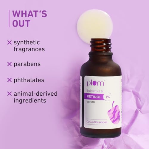 Retinol (a derivative of Vitamin A) gets your skin renewed from within! It helps collagen (a protein formed naturally in our skin) production & increases the rate of skin cell turnover. This 1% Retinol Face Serum is coupled with Bakuchiol to strike the perfect balance between efficacy and gentleness while helg the skin look smoother and firmer. Whos it for? Start using it in your late 20s to help keep fine lines & wrinkles at bay! Real people. Real results. The Plum consumer panel reported - 38% visible reduction in fine lines* ; 88% users reported skin firmness*; 93% reported smooth supple & visibly radiant skin*; 9/10 reported a visible difference in skin within 4 weeks* *6 week self-assessment study by the plum previews panel