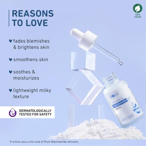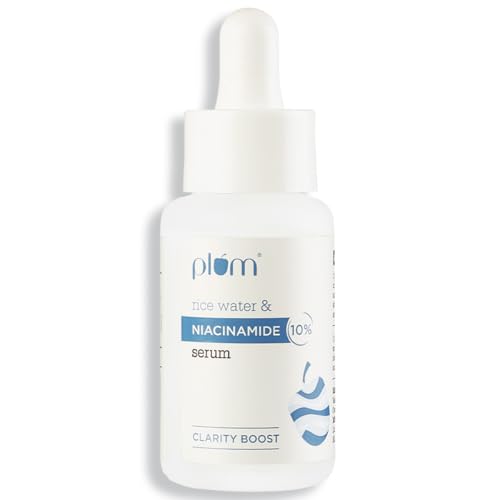 Plum 10% Niacinamide Serum with Rice Water | Provides Clear, Glowing & Brightening Skin | for Acne Prone, Combination, Oily & Sensitive Skin | Oil Control & Anti Acne Face Serum for Women & Men | 30ml