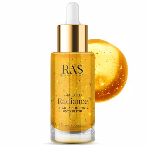 RAS Luxury Oils 24K Gold Radiance Elixir Face Serum for Glowing Skin, Skin Brightening, Reduce Wrinkles, Acne, Dark Spots, Natural & Organic