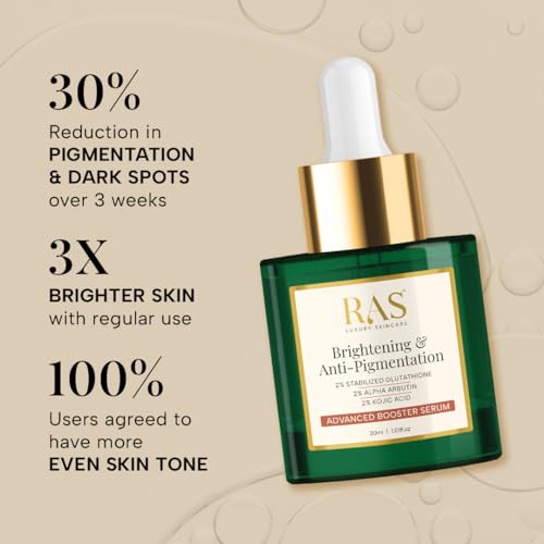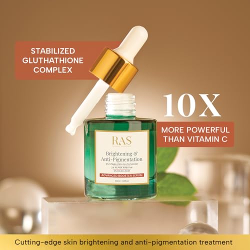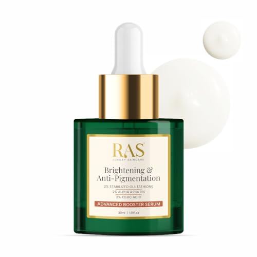 RAS Luxury Oils Brightening & Anti-Pigmentation Advanced Booster Serum | Glowing Skin with 2% Glutathione, 2% Alpha Arbutin, 2% Kojic Acid | Vitamin E & Alpha Arbutin Kojic Acid Serum (30 ml)