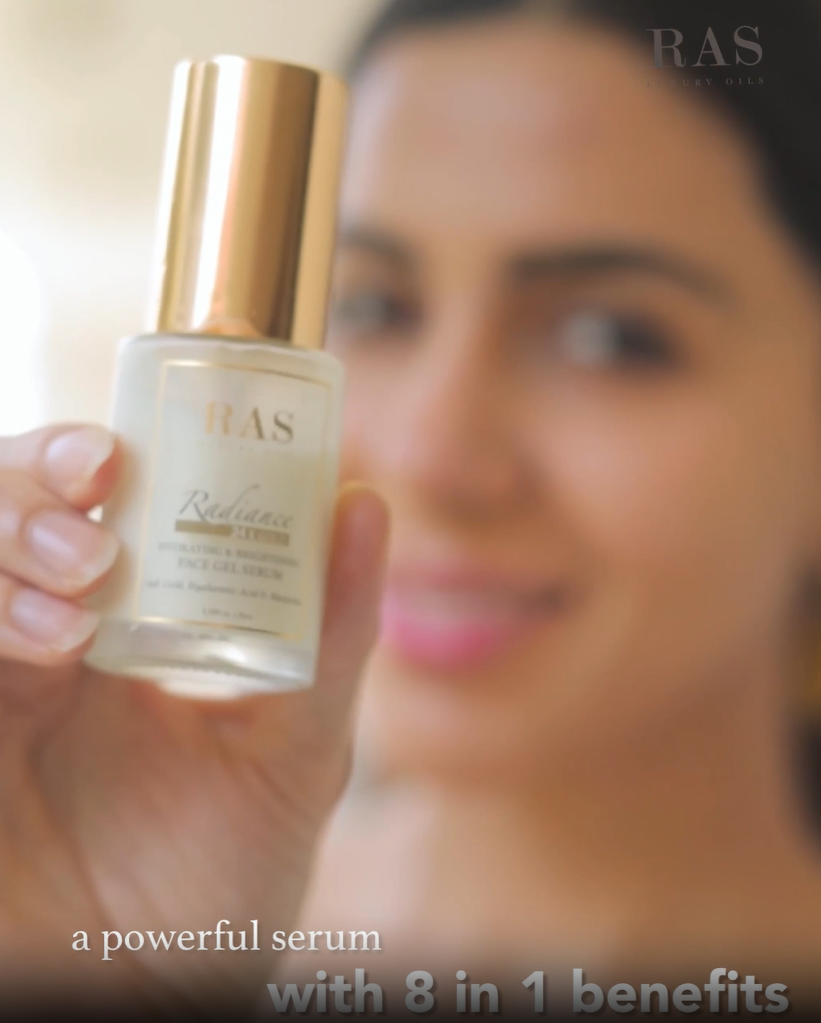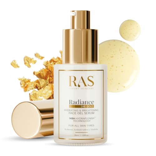 RAS Luxury Oils Radiance 24K Gold Brightening 8 in 1 Face Gel Serum Hydrates Skin, Infused with Hyaluronic Acid, Saffron, Manjistha & Rosehip 35 ml