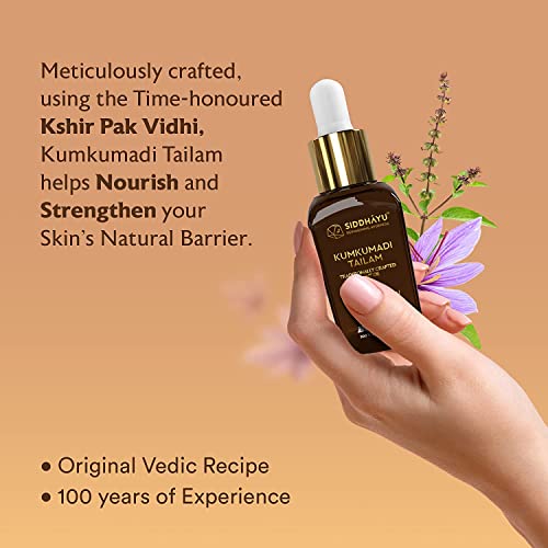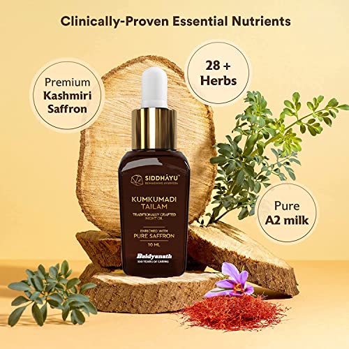 Siddhayu Kumkumadi Tailam - Skin Glowing Oil With premium Kashmiri Saffron, 28 plus herbs for Improving Skin Tone | Helpful in Reducing Dark Circles & Pigmentation | Remedy For Acne, Pimples - 10ml