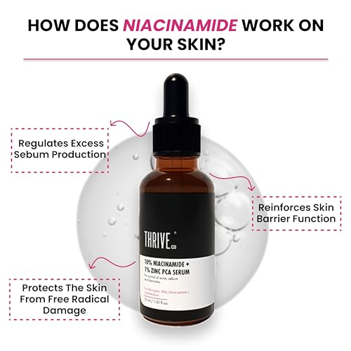EVERYDAY SERUM FOR BLEMISH AND ACNE-FREE SKIN: ThriveCoâs 10% Niacinamide Serum with 1% Zinc PCA is an ideal serum for combating acne and blemishes together. Niacinamide works on acne scars and stubborn blemishes while Zinc PCA acts on controlling sebum