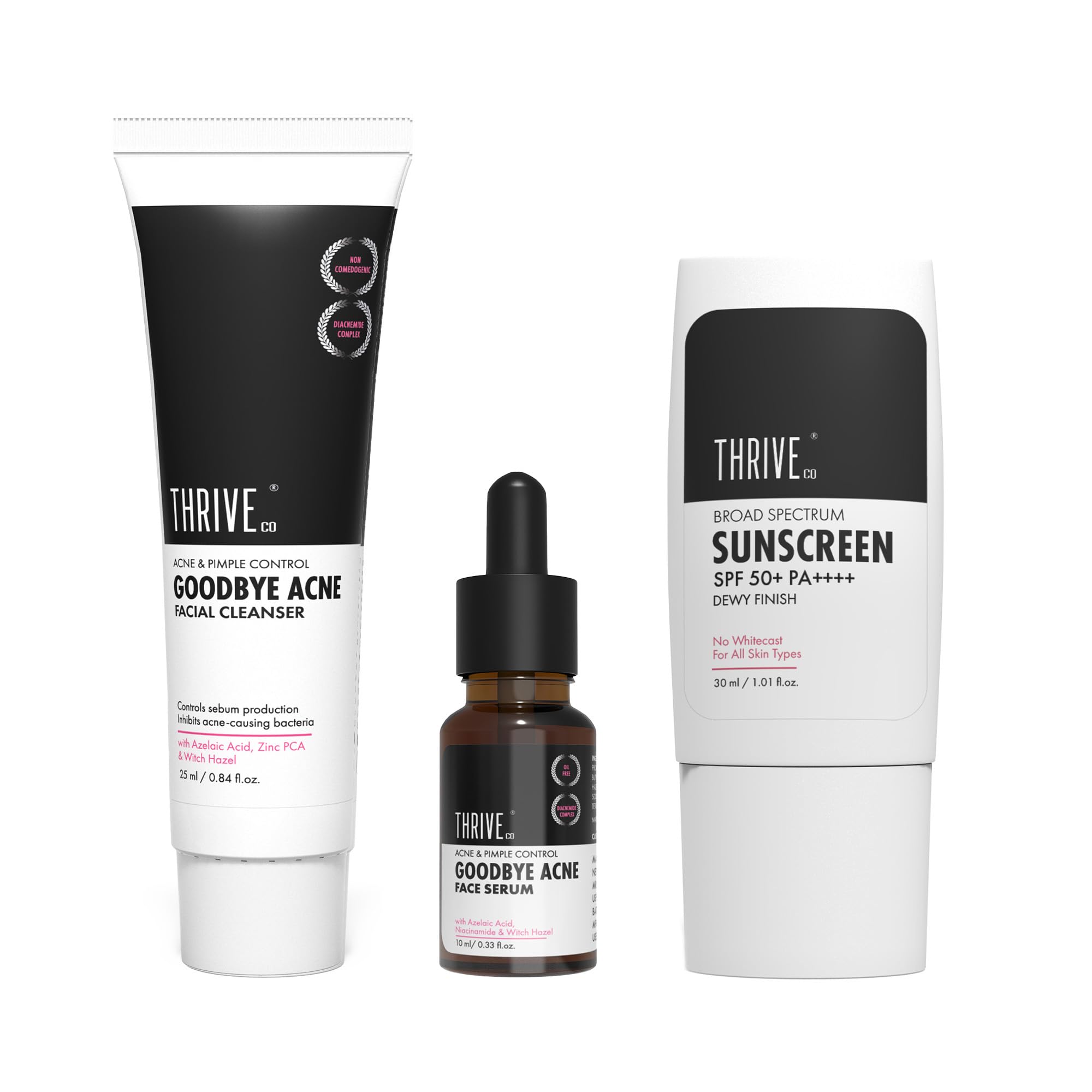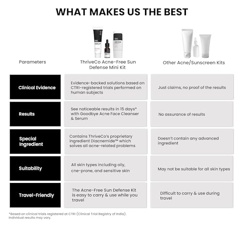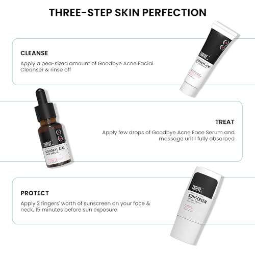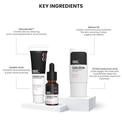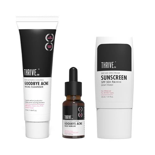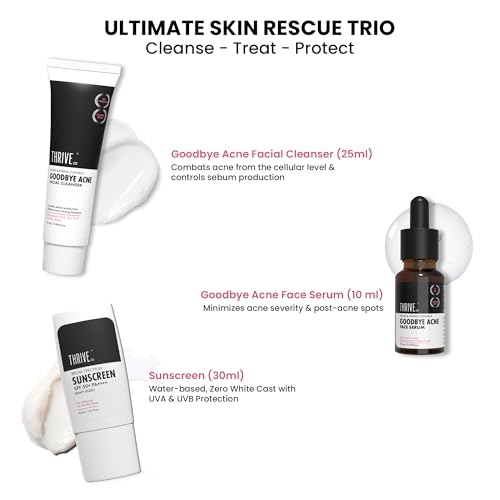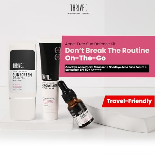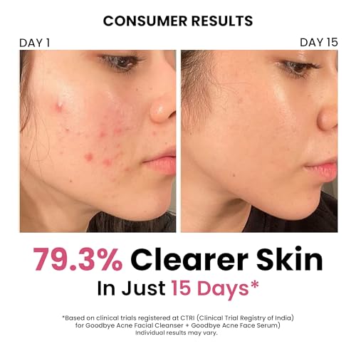 ThriveCo Goodbye Acne Facial Cleanser & Face Serum are nondrying science-backed & clinically proven to make your skin 79.4% clearer in just 15 DAYS.*They have an oil-free non-comedogenic formulation that minimizes acne blemishes post-acne scars and fades hyperpigmentation or dark spots left behind by acne. *Based on CTRI registered Clinical Trials. Individual results may vary.