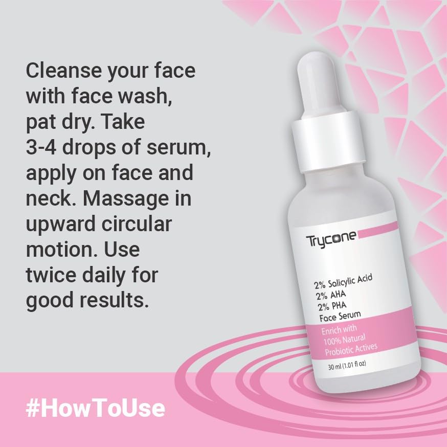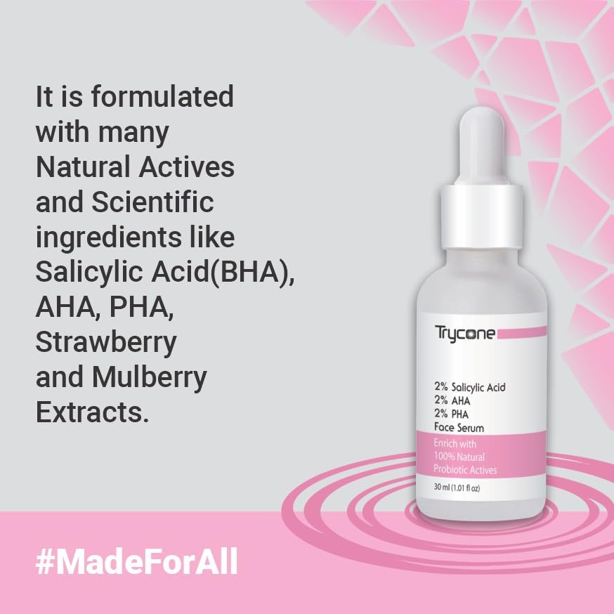 Trycone 2% Salicylic Acid Face Serum for acne with 2% AHA 2% PHA and 100% Natural Probiotic Actives 30 ml