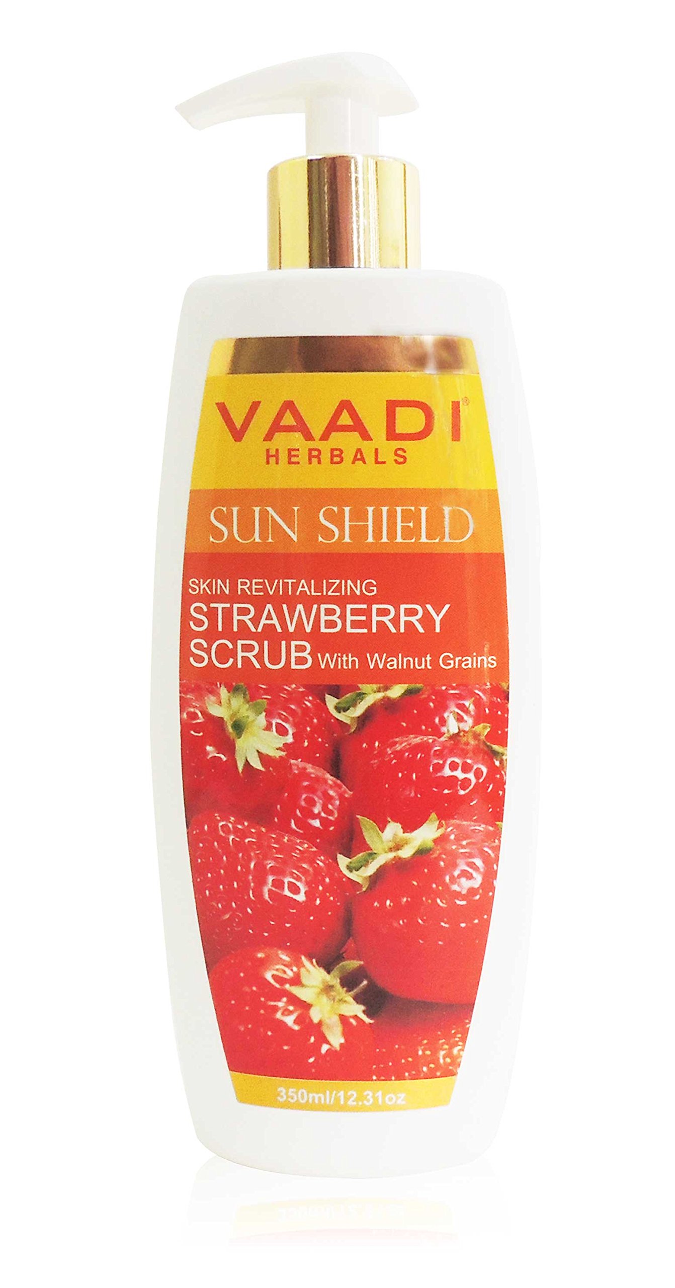 Vaadi Herbals strawberry scrub with walnut grains is creamy soft enriched with walnut grains lightens , softens and makes skin smooth. It's rich in anti-oxidants , gives your skin a healthy glow . The scrub gently exfoliates skin , removes dead cells and tan. It also protect your skin from harsh sun rays. Vaadi Herbals strawberry scrub makes your skin feel fresh , smooth and supple.