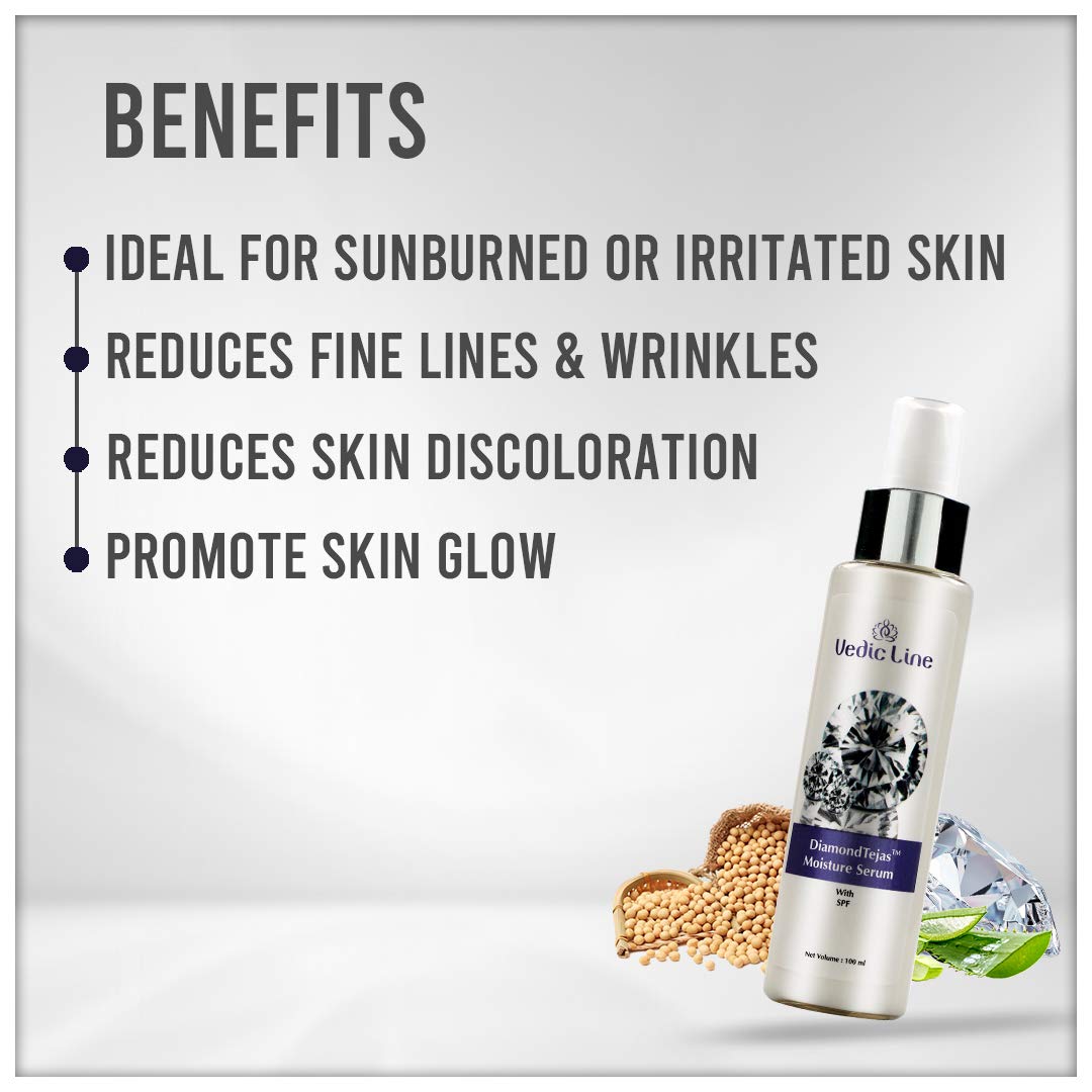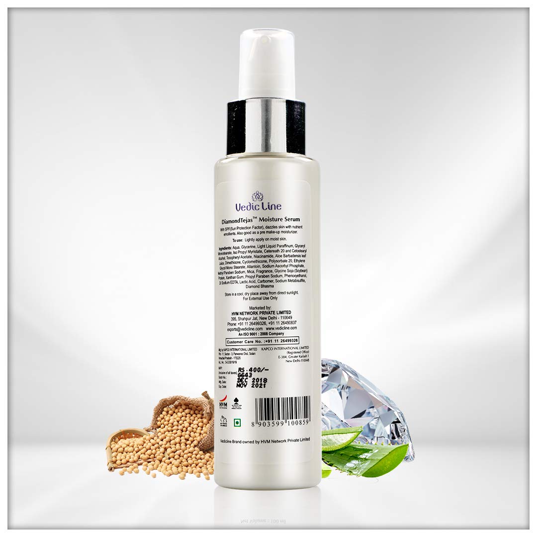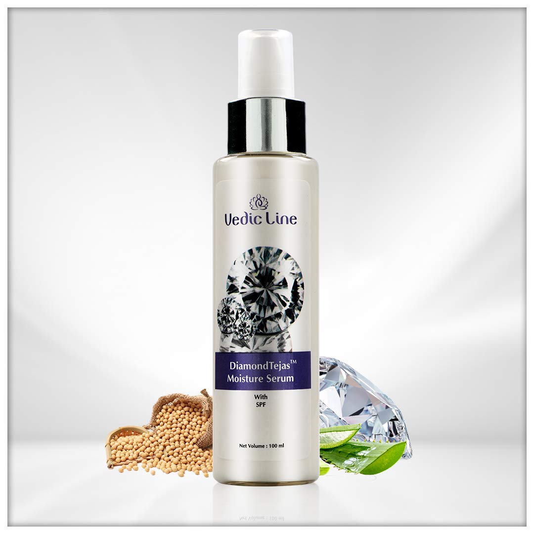 Vedicline Diamond Tejas Moisture Serum With SPF Improve Skin Elasticity & Skin Texture with Aloe Leaf Diamond Bhasma for Dimond like shine skin 100ml
