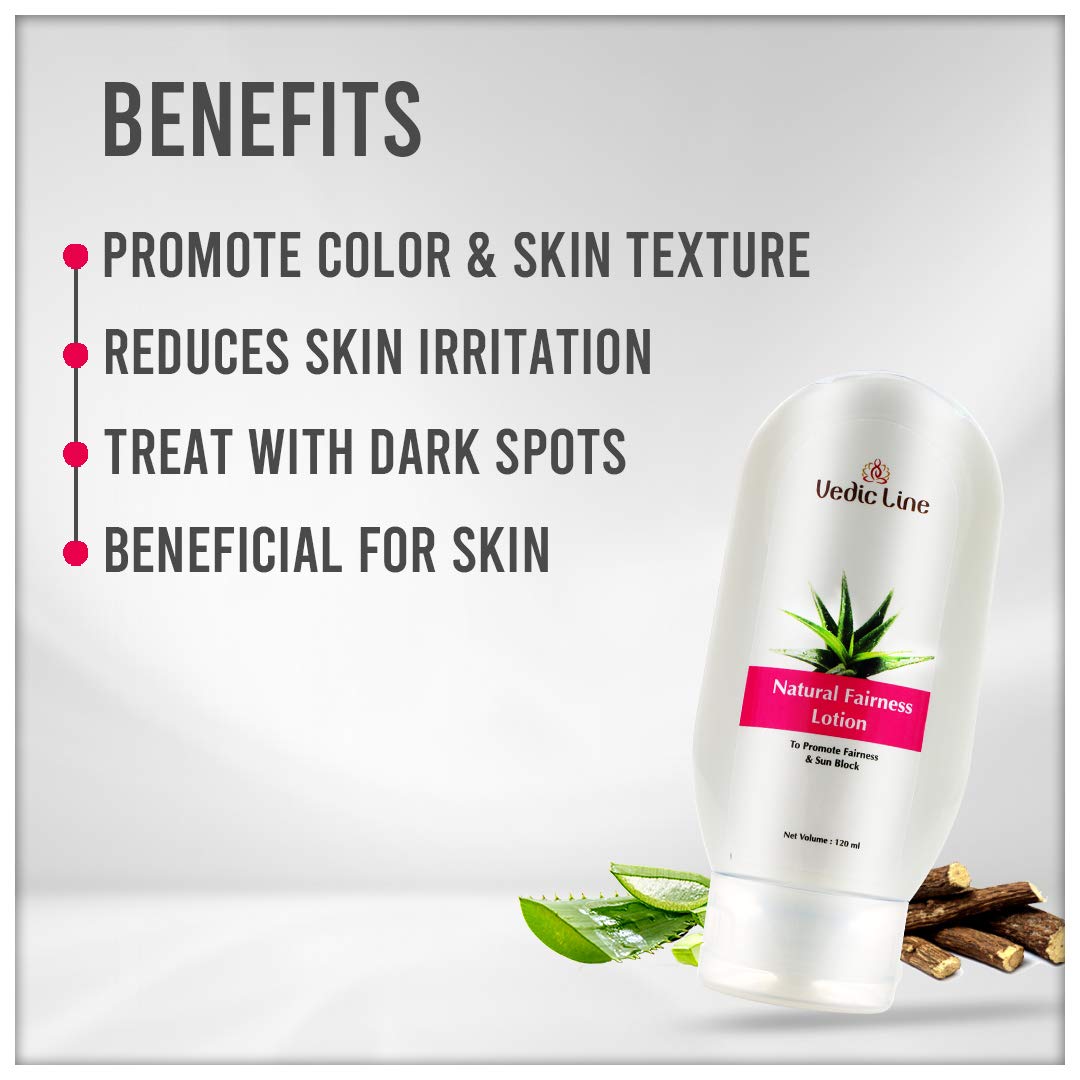 Vedicline Natural Fairness Lotion Reduce Wrinkles Acne & Dark Spots with Glycyrrhiza Glabra Aloe Vera for Natural Fairness Glow 120ml