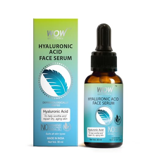 Deliver deep hydration to your dry patchy skin with WOW Skin Science hyaluronic acid face serum. It helps to moisturize and revive tired skin and boost the skin renewal process. It supports in boosting skins collagen structure and enhances skins elasticity. Helps to make skin luminous and supple. The serum offers the replenishing benefits of hyaluronic acid and silanetriol. Lack of moisture can aggravate signs of aging like dryness wrinkles spots and blotchy complexion. This serum with the moisture-binding hyaluronic acid and conditioning silanetriol assists in fighting those signs; giving your skin a smooth firm clear radiant look. Hyaluronic acid a moisture-binding compound gives deep hydration and supports the collagen structure; silanetriol is a conditioning active that smooths out wrinkles and patchy complexion. The serum works by attracting and retain healthy moisture for plumper firmer and more youthful look. It also supports the collagen structure of the skin which improves skin texture and appearance. Works beautifully on all skin types and can be used under makeup. Your skins daily dose of deep moisture for glowing health. Help hydrate your dry dehydrated and aging skin with WOW Skin Science hyaluronic acid face serum. It helps to nourish moisturise your skin and gives it a youthful suppleness.
